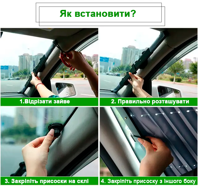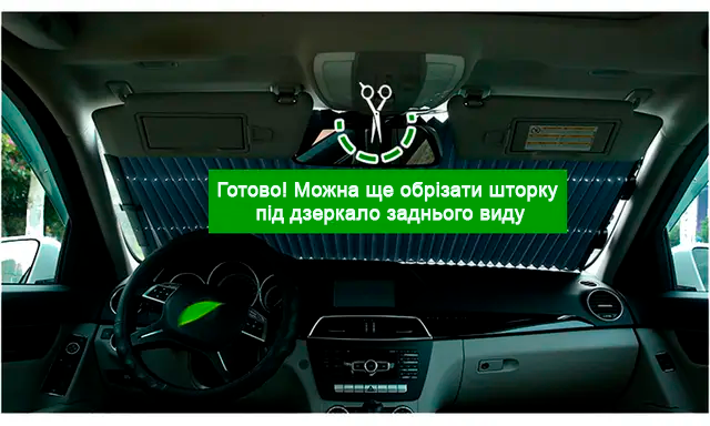 ✅ Не займає місця (Штора розташована біля стійки на лобовому склі, тому йому не потрібно шукати місця в авто)