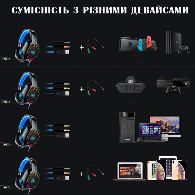 - Посилене сталевими елементами наголов'я: Ця гарнітура створена для тривалого використання: посилене сталевими елементами наголов'я забезпечує надійність, легкість і можливість підстроювання під розміри голови, зберігаючи міцність на довгі роки;