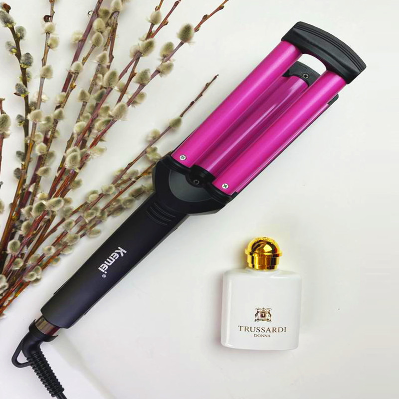 Сучасна та зручна у застосуванні професійна потрійна плойка для волосся kemei km-2022.