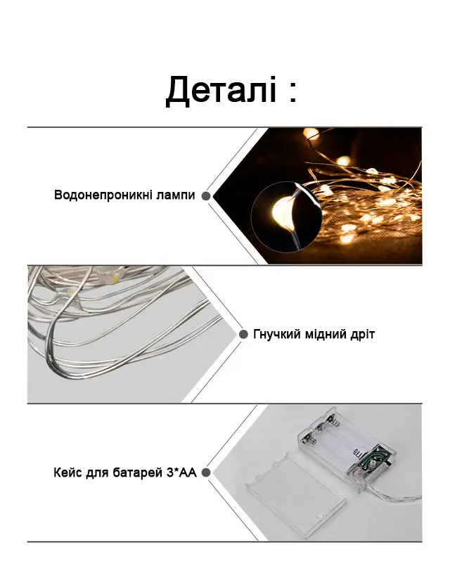 ✅ Міцність та стійкість гірлянди до механічних пошкоджень;