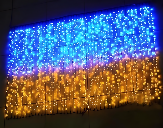 - Колір світіння: Флаг України, теплий білий і блакитний;