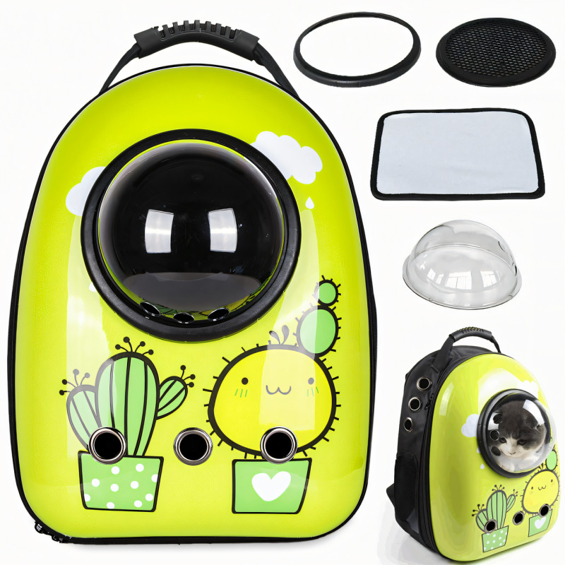Переноска-рюкзак CosmoPet з віконцем та вентиляцією для домашніх звірят, 42х35х27 см, салатовий кактус