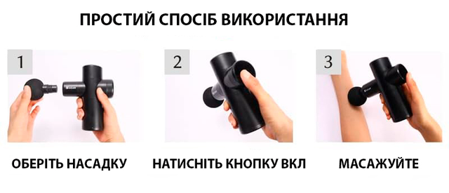 - Зручність використання: Ергономічна ручка забезпечує зручне захоплення й керування пристроєм, що робить його простим у використанні навіть для самостійного масажу;