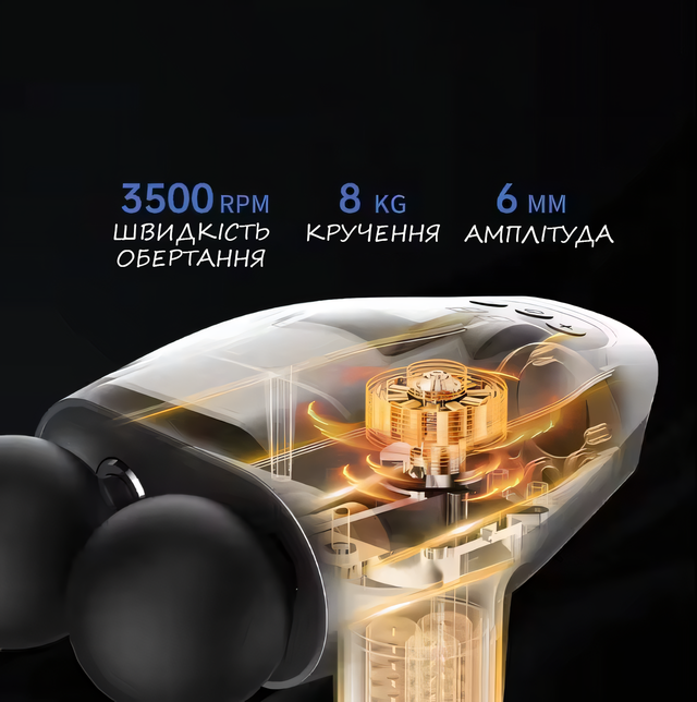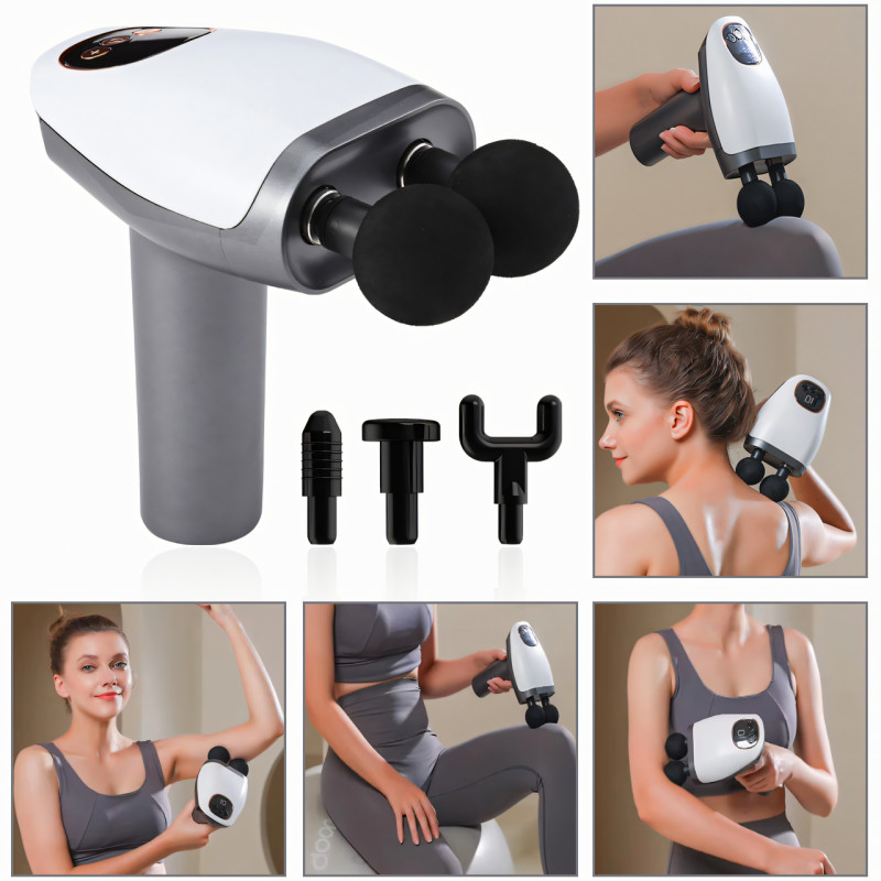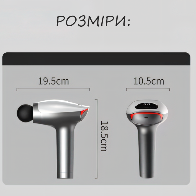 - Ергономічна форма: Масажер має ергономічну форму у формі пістолета, що забезпечує зручність його використання. Він комфортно лежить у руці та дає змогу легко керувати масажними рухами, досягаючи потрібних ділянок тіла;