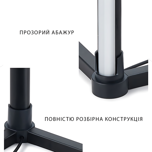 - Довжина лампи 1,40 м (розбірна конструкція: 3 частини по 45,8 см);