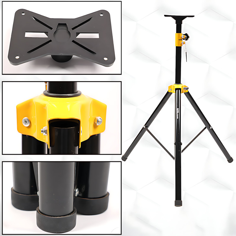 - Міцна конструкція: Виготовлена з високоякісного металу, стійка забезпечує надійність і стійкість, витримуючи навіть важкі акустичні системи;