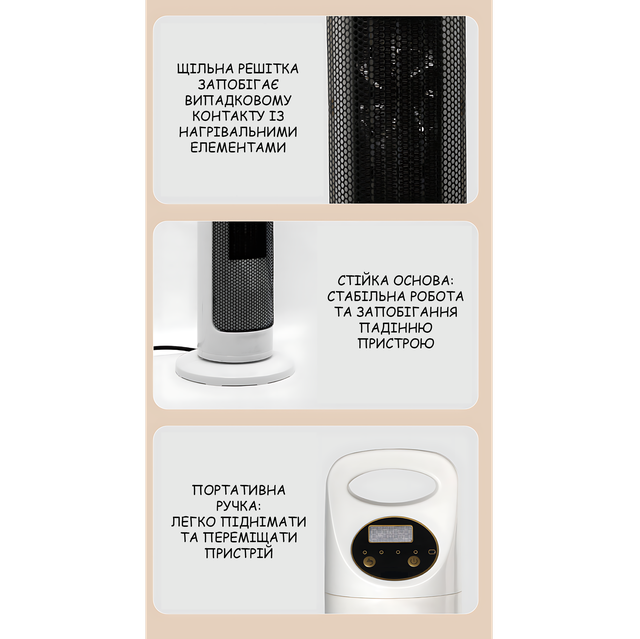 - Тип пристрою: Підлоговий електричний тепловентилятор (охолоджувач/нагрівач);