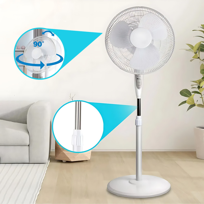 Підлоговий вентилятор Shihud 200 Вт із таймером до 7,5 год, 3 швидкостями, регульованою висотою, діаметр 38 см, білий, тихий (45 дБ)