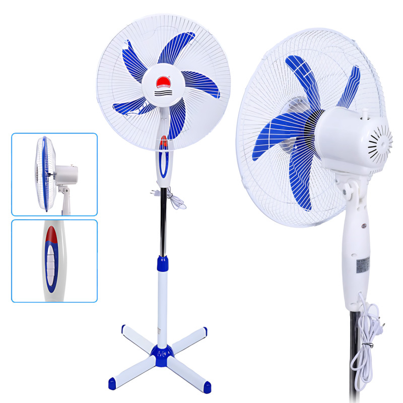 Підлоговий вентилятор WimpeX WX-1612 з підсвіткою, 100 Вт, 3 швидкості, автоповорот 90°, Ø45 см, регулювання висоти та нахилу, хрестовоподібна основа, біло-синій
