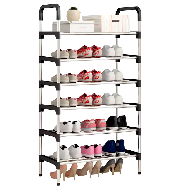 Універсальна полиця для взуття із шістьма секціями, ідеальне рішення для тих, хто цінує лад і функціональність у своєму гардеробі. Ця полиця допоможе вам організувати взуття, роблячи ваше приміщення зручнішим і охайнішим. З її 6 відокремленими секціями ви зможете розмістити взуття так, як вам зручно. Завдяки складаній конструкції, ви зможете легко скласти полицю, коли вона не використовується, що допоможе заощадити місце та полегшить зберігання.