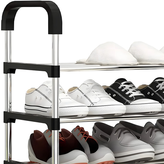 - Міцність і довговічність: Виготовлена з високоякісних матеріалів, як-от металеві труби та пластикові компоненти, ця полиця має високу міцність і довговічність, забезпечуючи надійне зберігання взуття на тривалий термін.