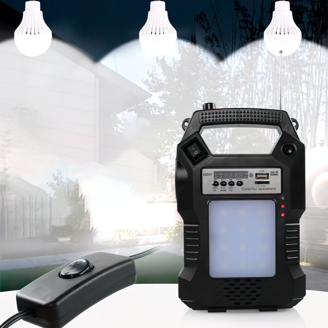 Сонячна система GD 8060 — це чудове рішення для забезпечення аварійного освітлення та заряджання Ваших ґаджетів. Пристрій має два джерела живлення: зарядний пристрій від мережі 220 В і виносна сонячна панель на 3.5 Вт. Також прилад обладнаний 3 виносними лампочками для забезпечення кімнатного освітлення, прожектором, ліхтарем і радіостанцією з можливістю використовувати TF карти. Не маловагою особливістю є наявність USB-порту, за допомогою якого ґаджет можна використовувати як повербанк. Завдяки індикатору рівня заряду Ви завжди будете вчасно обізнана про потребу підзарядити сонячну панель.