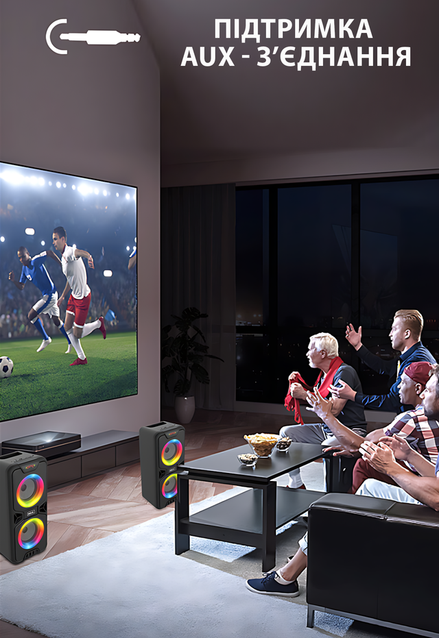 - ✅ Шоу світла — яскрава LED-підсвітка змінює кольори в такт музиці, створюючи ефектну візуалізацію.