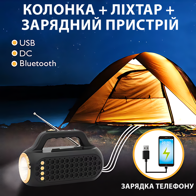 Портативна Bluetooth-колонка EASY POWER EP-516 — 15 Вт, ліхтарик, сонячна панель, USB, SD, FM, Bluetooth