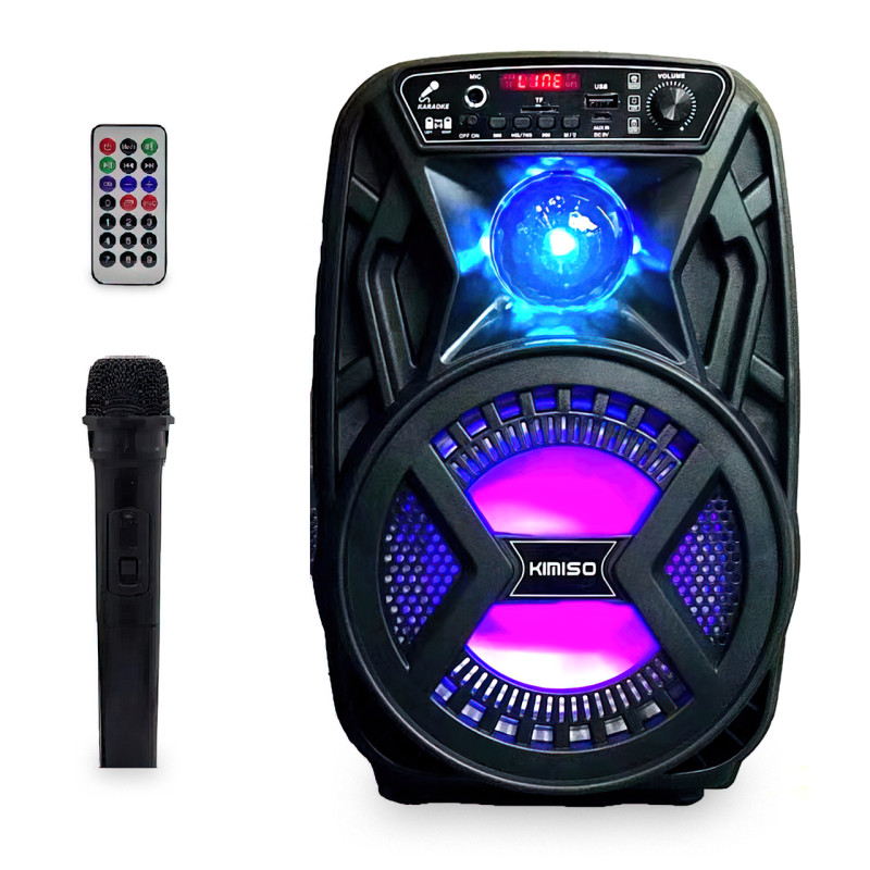 Kimiso QS-3603 також може використовуватися як караоке-системи, оскільки в комплекті з нею йде дротовий мікрофон і все керування є на передній панелі. Ви зможете насолоджуватися співом разом із друзями або використовувати колонку для проведення різних заходів і свят. Колонка також обладнана вимикною квітопухою, що дає змогу налаштувати її під свої переваги.