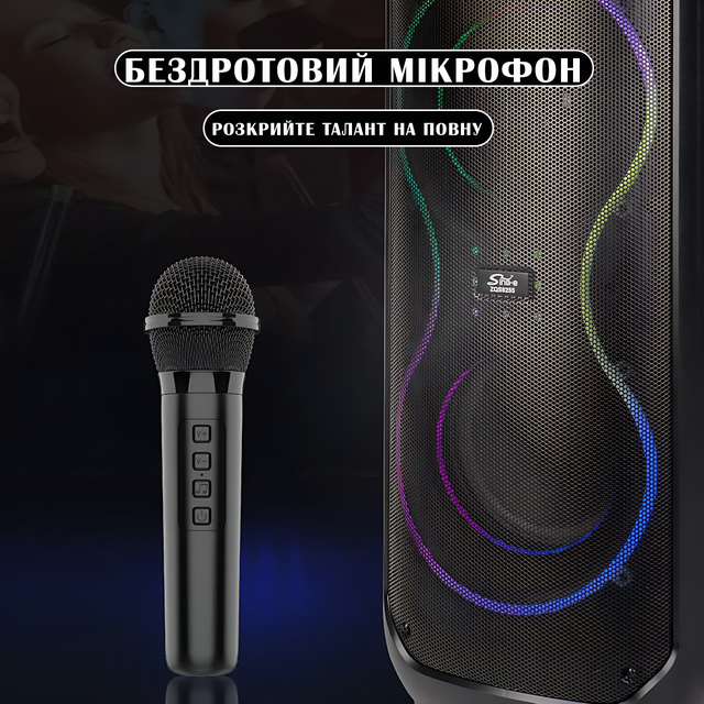 Портативна колонка SING-E ZQS8255 з караоке, Bluetooth, 40 Вт, 12" динамік, RGB-підсвітка, FM-радіо