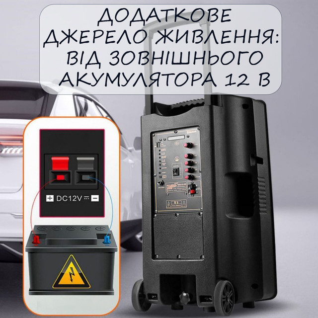 - Додаткове джерело живлення: Від зовнішнього акумулятора 12 В;