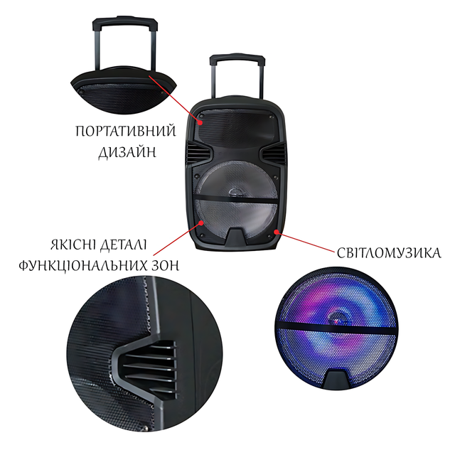 Портативна колонка Tekno altavoces 6.5" з мікрофоном і RGB-світиною, акумуляторною Bluetooth динамік