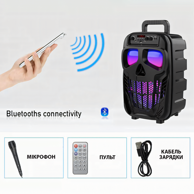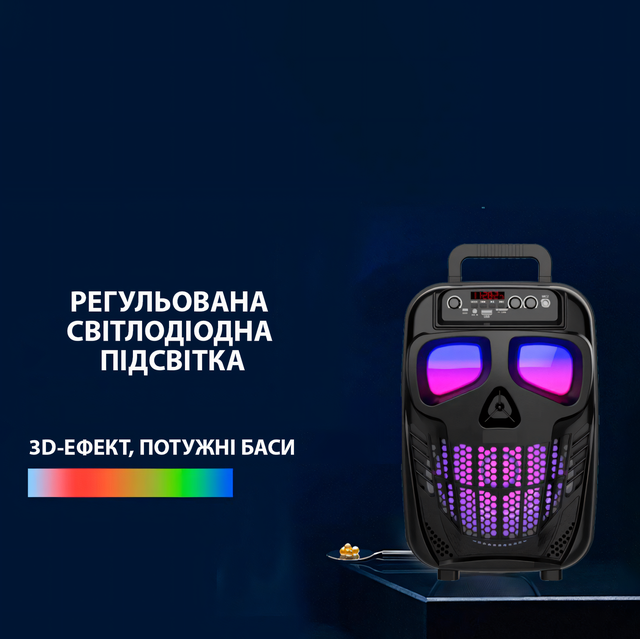 - Потужність з LED-підсвіткою: Висока потужність з ефектною LED-підсвіткою, що реагує на музику, створює унікальну атмосферу;