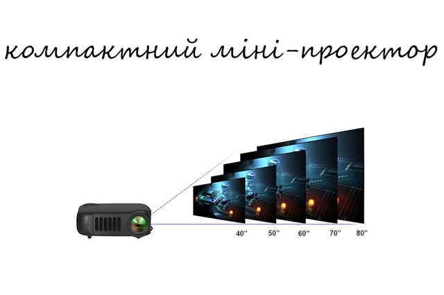- ✔ Повний комплект — проєктор, пульт і кабель