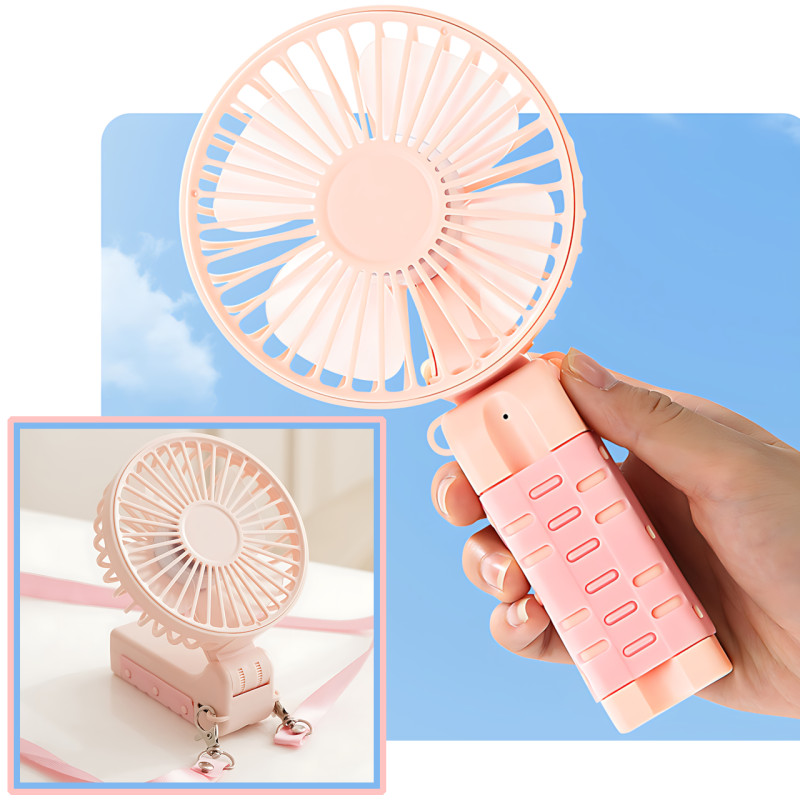 Портативний мінівентилятор Fan 46 AND 063, 1200 мА·год, 3 швидкості, складаний, безщітковий, Type-C, 21 × 11 × 3.5 см Рожевий