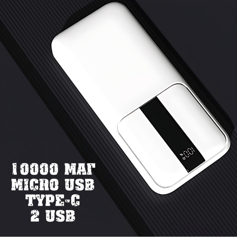 - Ємність 10000 мА·год: забезпечує до декількох повних зарядів смартфона або інших пристроїв;