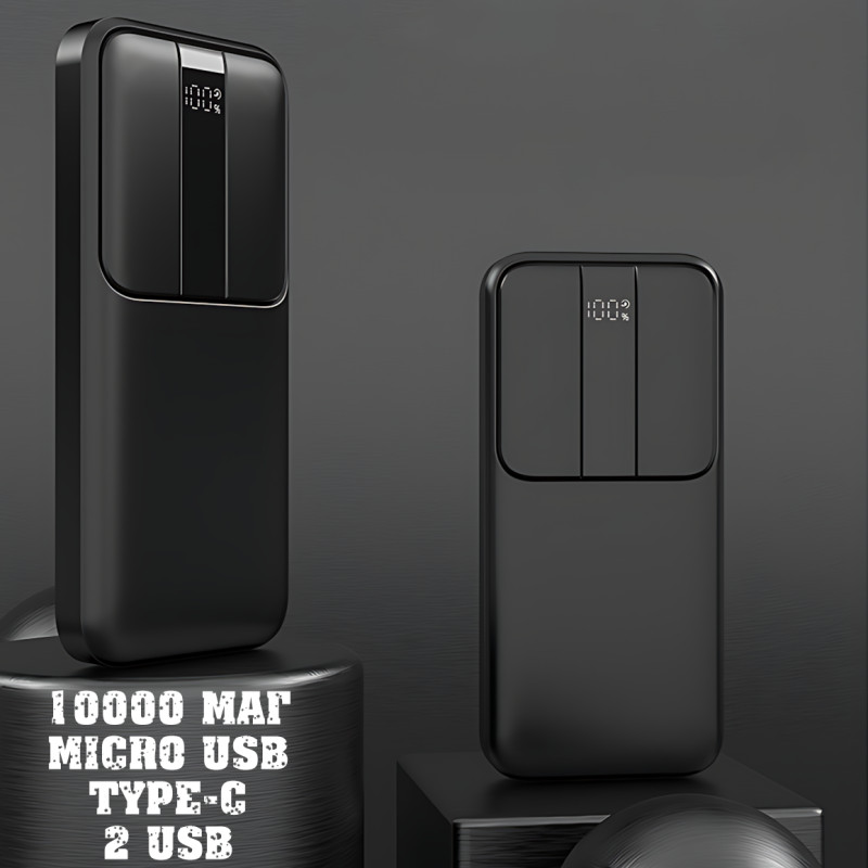 - Ємність 10000 мА·год: забезпечує до декількох повних зарядів смартфона або інших пристроїв;