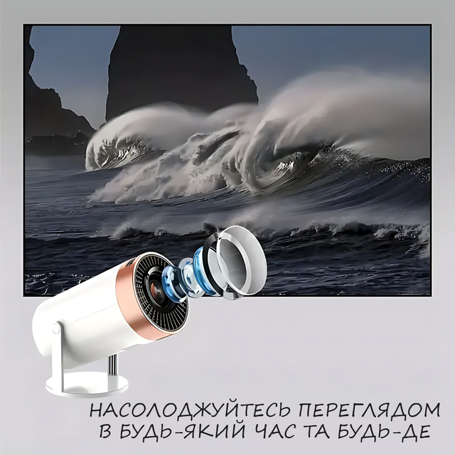 Цей компактний і легкий проєктор створений для зручного домашнього використання. Завдяки вбудованій операційній системі Android 11 і підтримці Wi-Fi та Bluetooth, він дає змогу легко під'єднуватися до смартфонів, планшетів та інших пристроїв. Ідеально підходить для перегляду фільмів, ігор, презентацій та інших розваг на великому екрані.