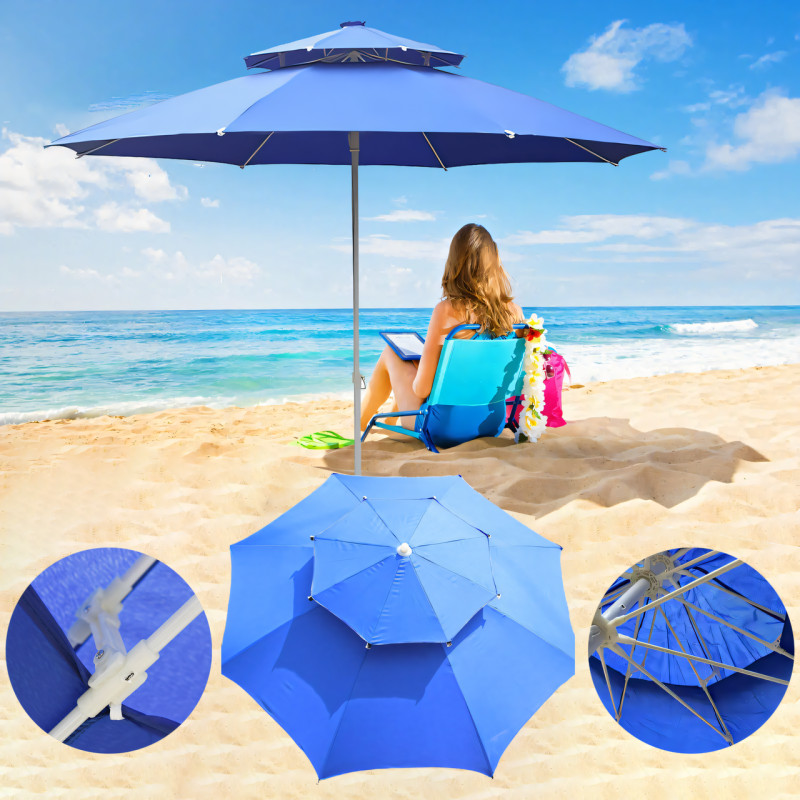 Посилена торгова парасолька 2.5 м, пляжна парасолька з подвійним клапаном "Антивітер", 8 спиць, двошаровий навіс, синій