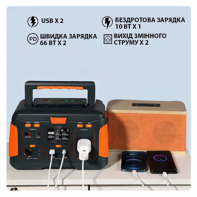 - Компактність і потужність: Об'єднує компактні розміри та високу потужність, що забезпечують ефективне живлення й заряджання для різних пристроїв;