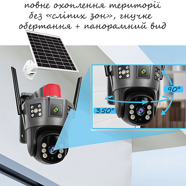 Поворотна 4G-камера відеоспостереження з 3 лінзами SD 35-4G, від сонячної панелі, 5 Мп, з акб 10 000 мА·год