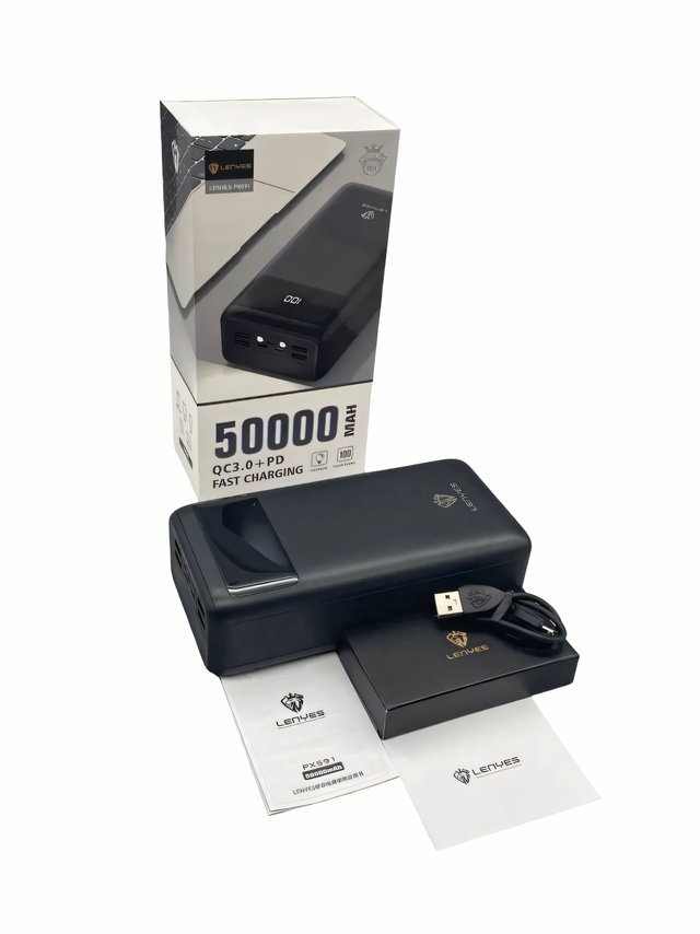 Power Bank Lenyes PX591 з ємністю 50000 мА·год і чотирма портами USB, включно з Type-C, MicroUSB і Lightning, забезпечує надійне та швидке зарядне рішення для будь-якого пристрою. Велика місткість і підтримка безлічі циклів заряджання роблять його ідеальним для мандрівників і людей з активним способом життя. Міцний пластиковий корпус і вбудовані захисні функції гарантують довговічність і безпеку використання.