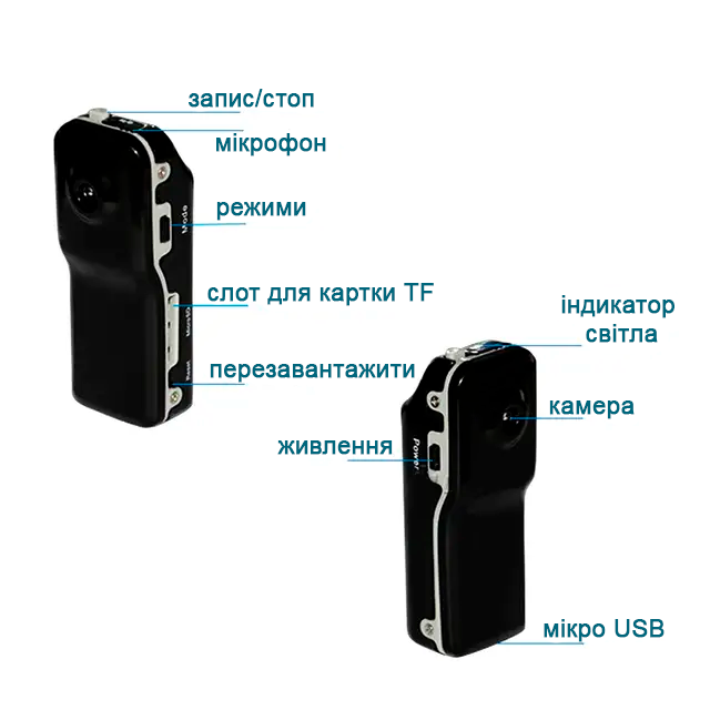 Міні камера має функцію запису вбудованого датчика звуку, має дуже компактний розмір і може бути використана непомітно для оточуючих.