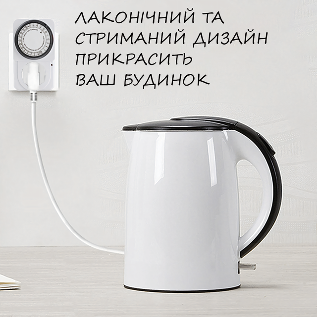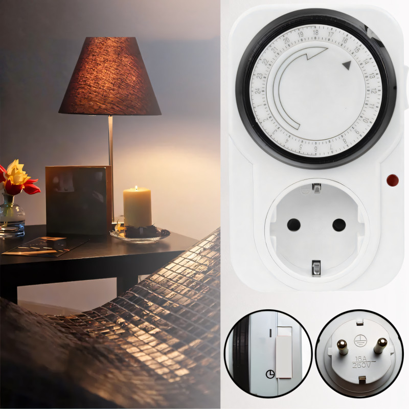Програмовний таймер для мережі 220 В дає змогу автоматизувати увімкнення і вимкнення різних побутових електроприладів (з максимальною потужністю 3,5 кВт) у заданий час. Програмований таймер для мережі 220 В являє собою зручне й економне рішення для автоматизації побутових приладів, гарантуючи безпеку та економію електроенергії. Таймер-розетку можна використовувати для безлічі корисних цілей у побуті, як-от вмикання калорифера до вашого приходу з роботи, контроль часу, що проводиться дитиною за комп'ютером або перед телевізором, вимикаючи їх у заданий час, вимкнення електроприладів, наприклад, праски, за вашої відсутності. Автоматизація акваріума або тераріуму, упанування насосом або нагрівачем, економія електроенергії, під'єднання бойлера гарячої води через таймер. Таймер може вмикати бойлер увечері до вашого приходу та вимикати його вранці, що дає змогу заощаджувати електроенергію, не підтримуючи температуру води у вашу відсутність.