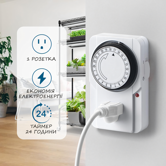 - Ручне керування: Наявність ручного вимикача для негайного увімкнення або вимкнення під'єднаних приладів, водночас задані програми зберігаються;