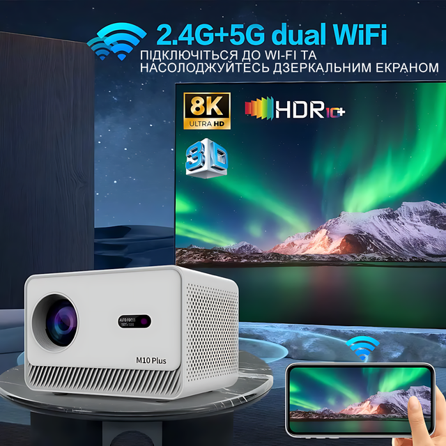 Проєктор M10 4K Android 12, мініпроєктор Wi-Fi/Bluetooth, 2.4G+5G, 200 дюймів, з вбудованими динаміками