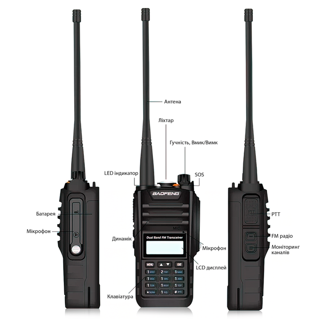 Радіостанція Baofeng UV-9R Plus з радіусом до 22 км, VHF/UHF, 2500 мА/год