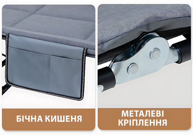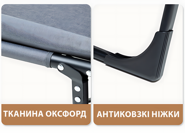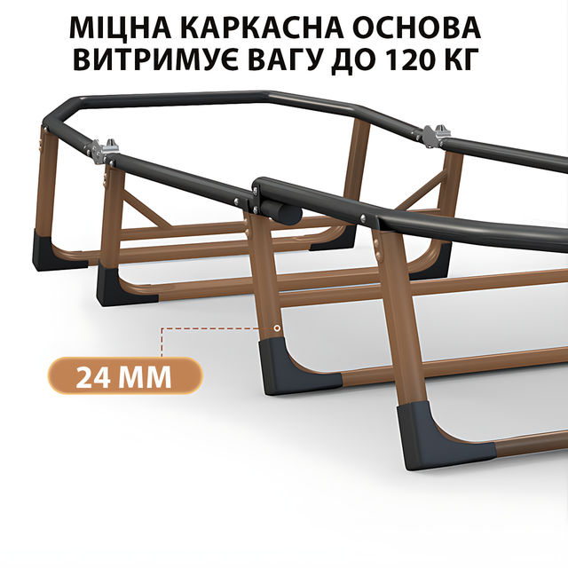 - ✔️ Надійний — міцний металевий каркас витримає до 120 кг. Не хитається, не прогинається — жодних сюрпризів!