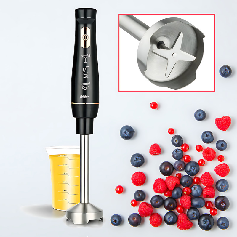 Ручний блендер BITEK BT-313B, потужність 1600 Вт, 4 леза з неіржавкої сталі, чаша 600 мл, чорний