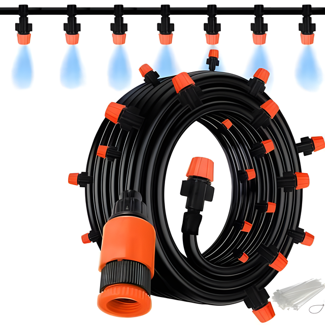Перетворіть свій сад або терасу на оазис прохолоди з професійною системою туману BD-182 від Patio Mistcooling Kit. Цей автоматичний садовий крапельний душ-зрошувач води забезпечить вас свіжістю навіть у найспекотніший день. Завдяки найменшому рівномірному розпиленню води під тиском, система створює ілюзію туману, що складається з дрібних крапельок, створюючи атмосферу комфорту та прохолоди.