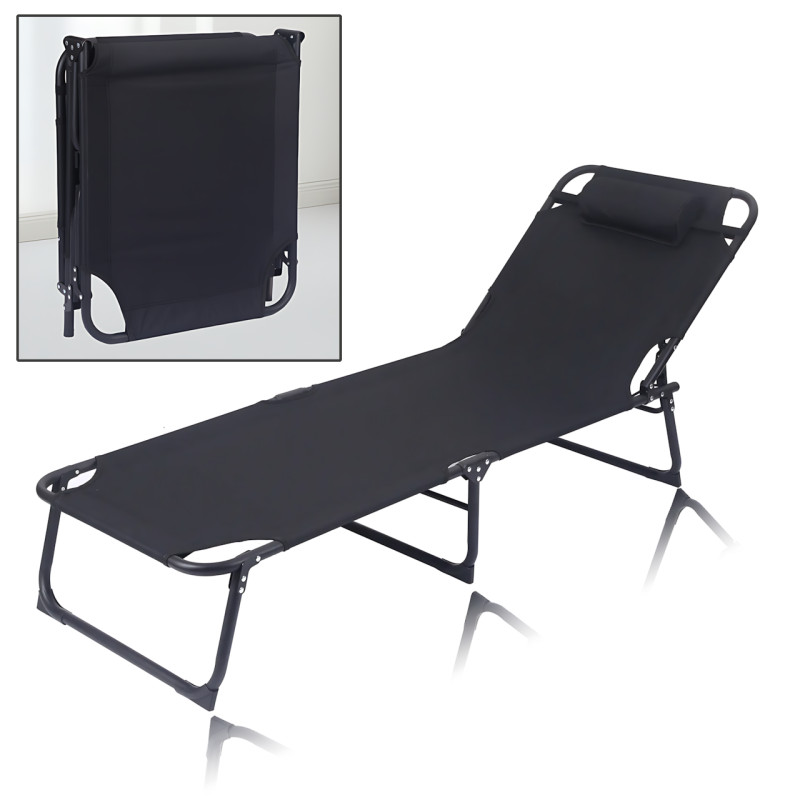 Шезлонг садовий пляжний розкладний 56×176 см, сталевий каркас, тканина Оксфорд, до 120 кг, складаний, чорний