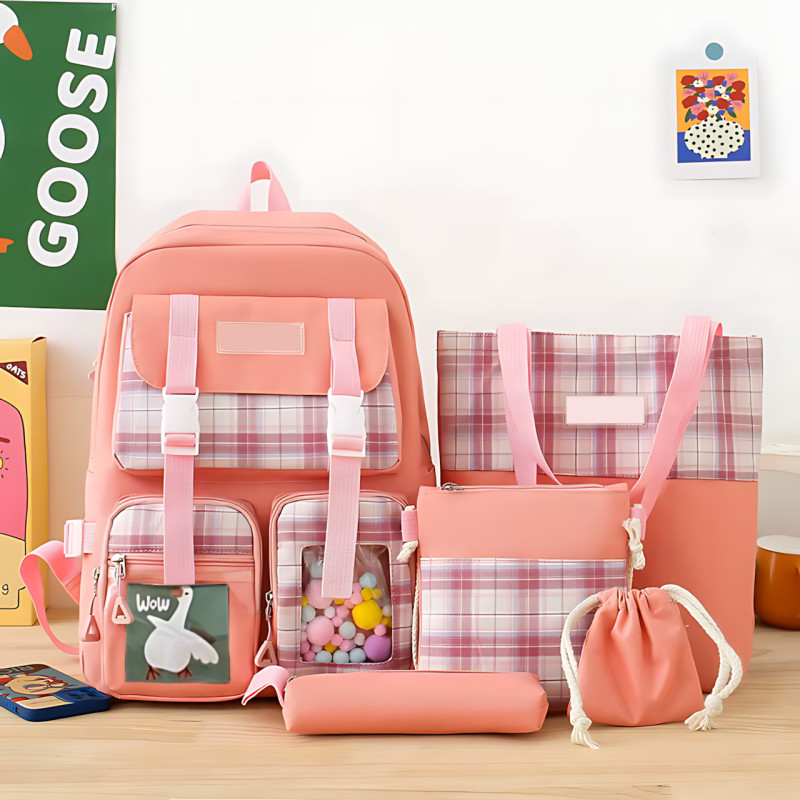 Шкільний набір 5 в 1 Каченя і Кулі MFG-2-618: рюкзак, сумка, пенал, клатч і мішечок Рожевий