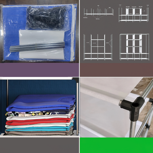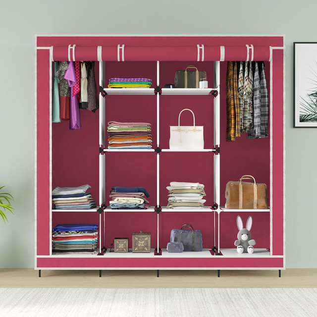 Шафа обладнана 10 глибокими полицями та 2 великими платтяними відділеннями, надаючи багато місця для зберігання ваших речей. Його гарний бордовий чохол і стійкий, але легкий каркас створюють надійну й естетичну конструкцію, яка додасть функціональності та стилю у ваш дім. Мобільні складані шафи являють собою сучасну заміну громіздких платтяних шаф. Їхня конструкція містить металевий каркас і міцний тканинний чохол, який захищає ваші речі від води та пилу. Ця шафа міцна та стійка, але за потреби її можна швидко розібрати та перемістити. Це особливо корисно, якщо ви знімаєте квартиру, живете в гуртожитку або часто переїжджаєте.