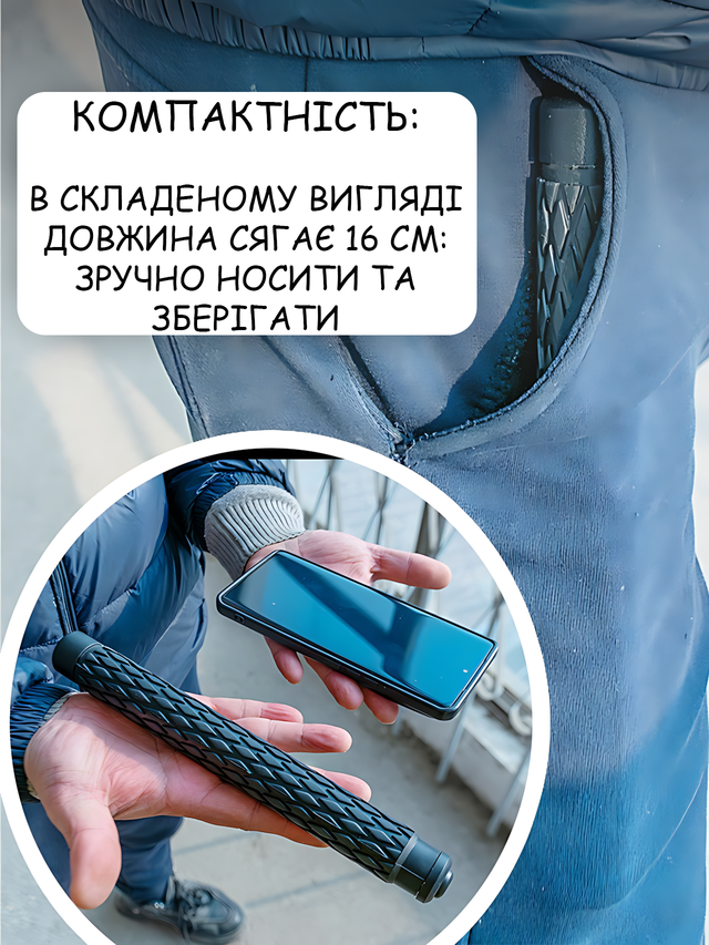 - Компактність: 16 см у складеному вигляді — зручно носити та зберігати.
