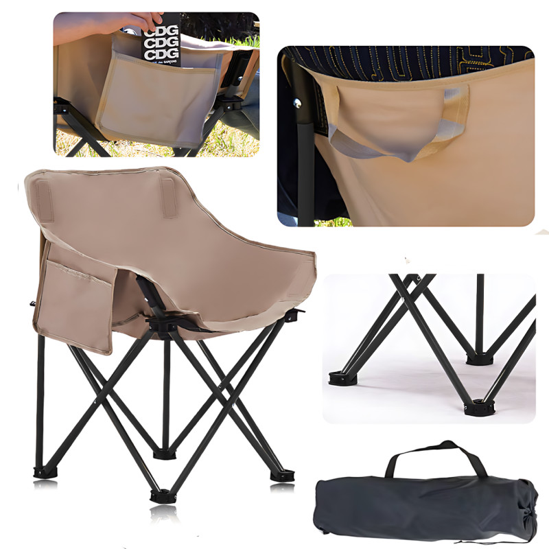 Складаний кемпінговий стілець Moon Chair зі спинкою та кишенею, тканина Оксфорд, рама з вуглецевої сталі, навантаження 120 кг, 69×44×43 см, із сумкою для перенесення