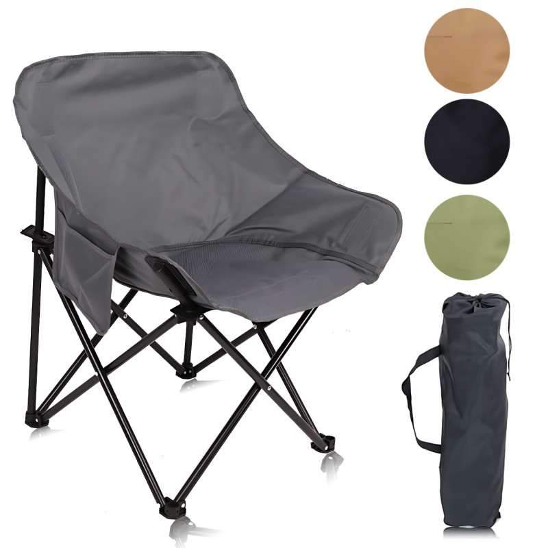 Складаний кемпінговий стілець Moon Chair зі спинкою та кишенею, тканина Оксфорд, рама з вуглецевої сталі, навантаження 120 кг, 69×44×43 см, із сумкою для перенесення