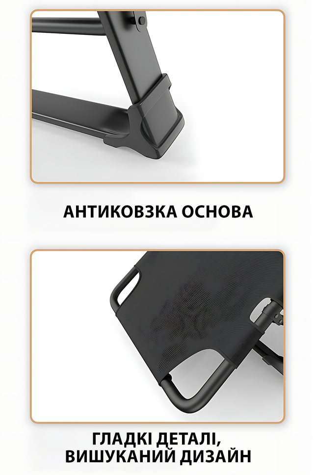 - ✔ Протиковзні накладки — крісло стійке навіть на гладких і слизьких поверхнях.