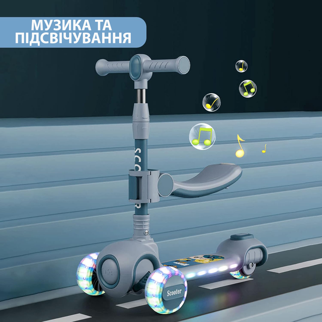 Скутер 3 в 1, дитячий триколісний самокат Scooter H066 з підсвіткою коліс, складана конструкція, 3-12 років