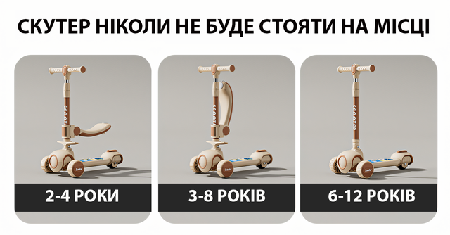 - Надійність і безпека: Конструкція самоката забезпечує стабільність і впевненість під час катання. Механізм складання простий у використанні та надійно фіксує кермо, запобігаючи випадковому складанню під час руху. Також наявність сидіння й ручки для малюків дає змогу їм почуватися комфортно та безпечно;