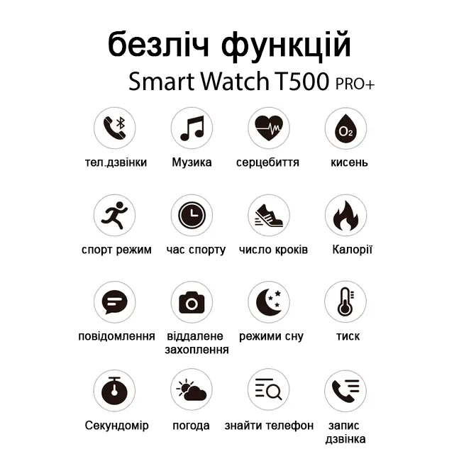 Смарт годинник T500, стиль Apple Watch, розширений функціонал, голосовий виклик Smart Watch T500 PRO+